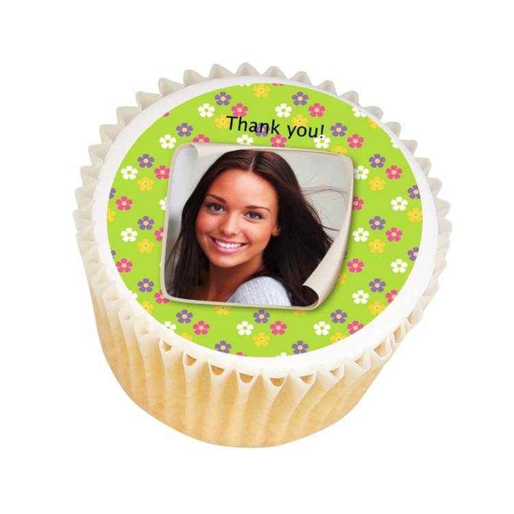 Delicious cupcakes with a flowers design and personalised with your message and photo.