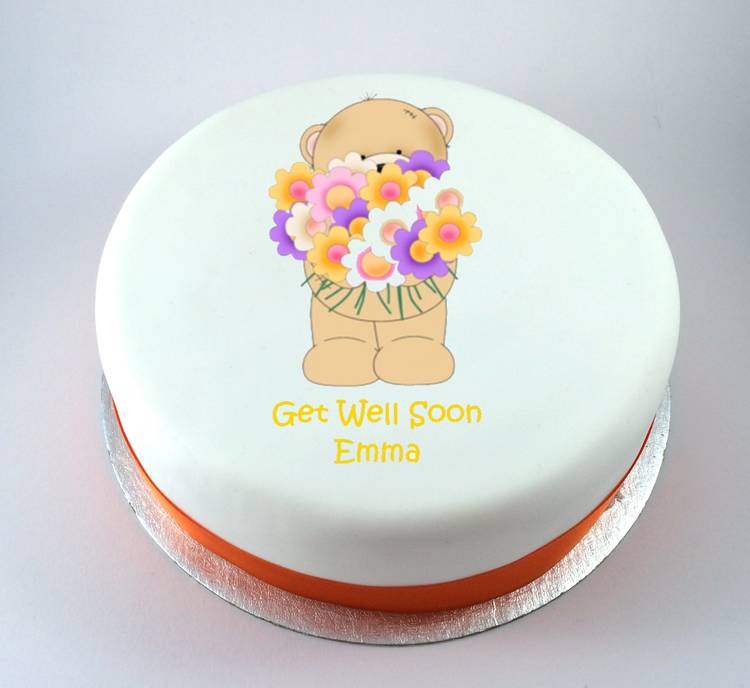 Delicious sponge cake with a bear with flowers design and personalised with your message. Perfect for a get well soon gift.