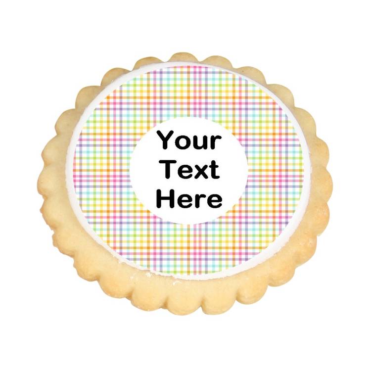 Delicious cookies with a pastel checks design and personalised with your message. Just to say......!