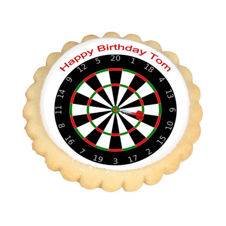 Delicious cookies with a dartboard design and personalised with your message.