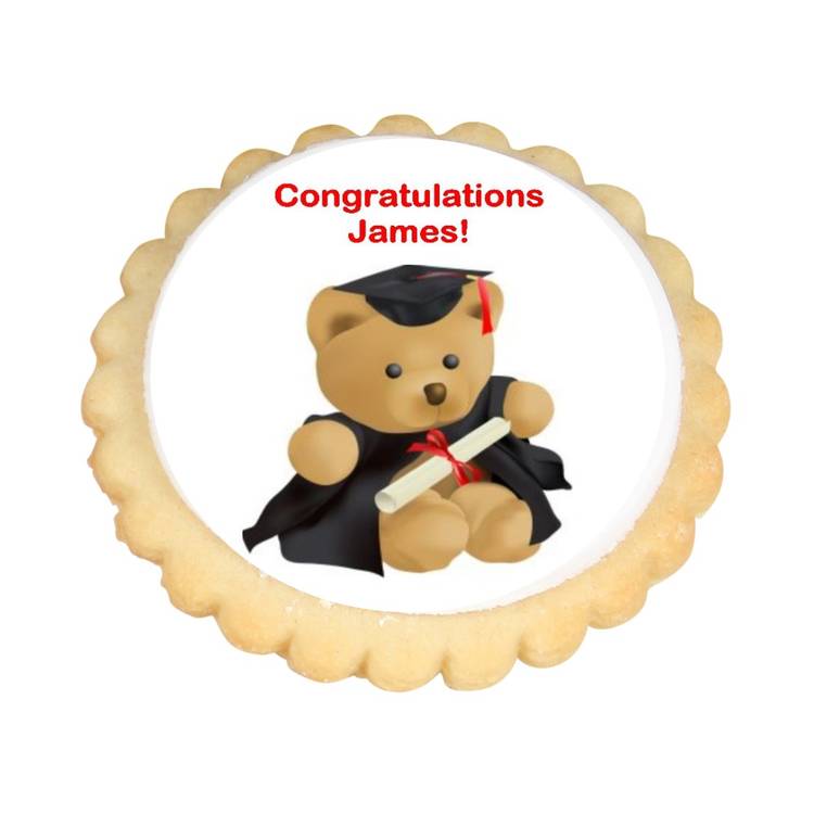Delicious cookies with a graduation bear design and personalised with your message.