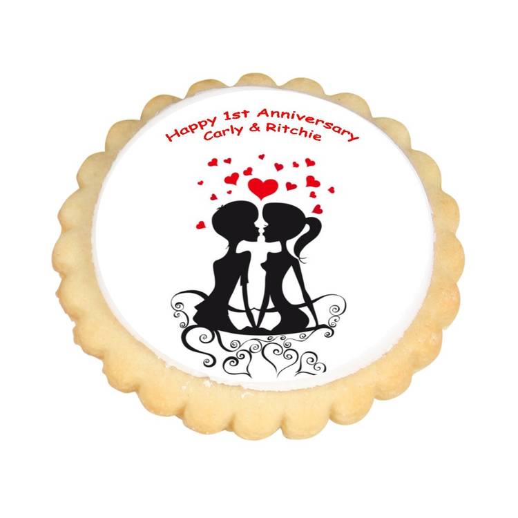 Delicious cookies with a loving couple design and personalised with your message.
