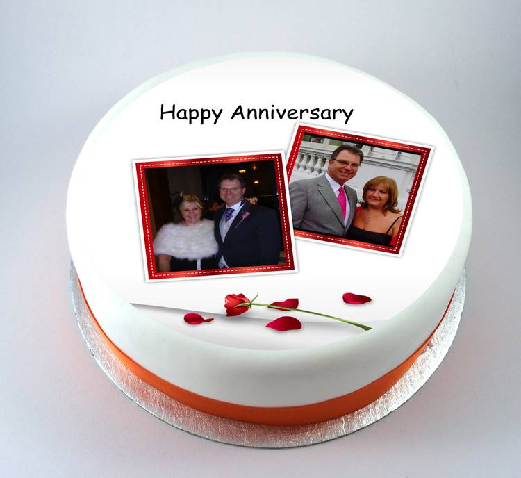 Delicious sponge cake with a double photo and rose design and personalised with your message.