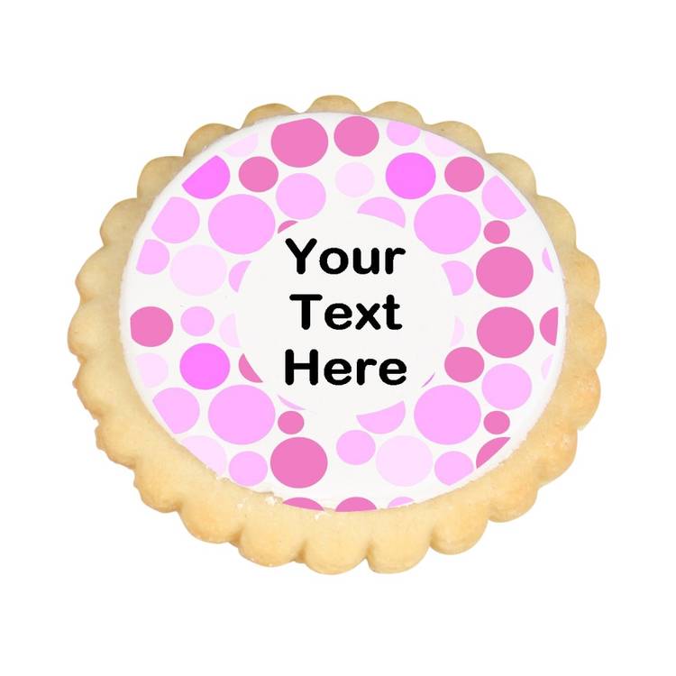 Delicious cookies with a pink and purple polka dot design and personalised with your message. Just to say......!