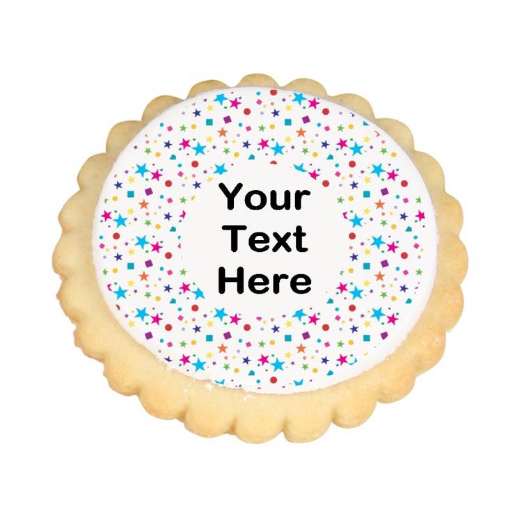 Delicious cookies with a multi coloured stars design and personalised with your message. Just to say......!